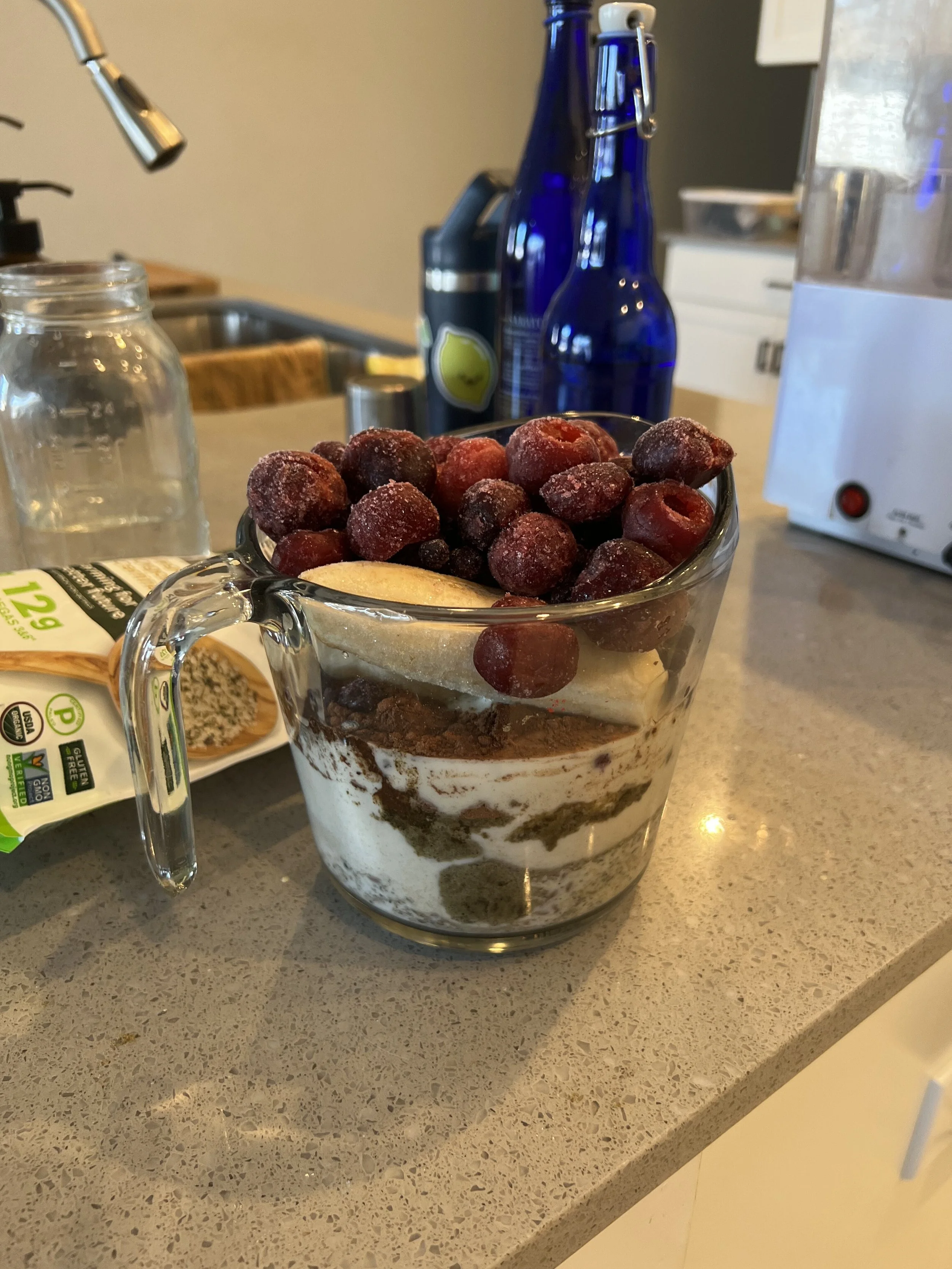 My blender was actually broken and in for repair this day so I had to run across the street to my sis-in-law’s and use her blender for my smoothie… hence the measuring cup🤣